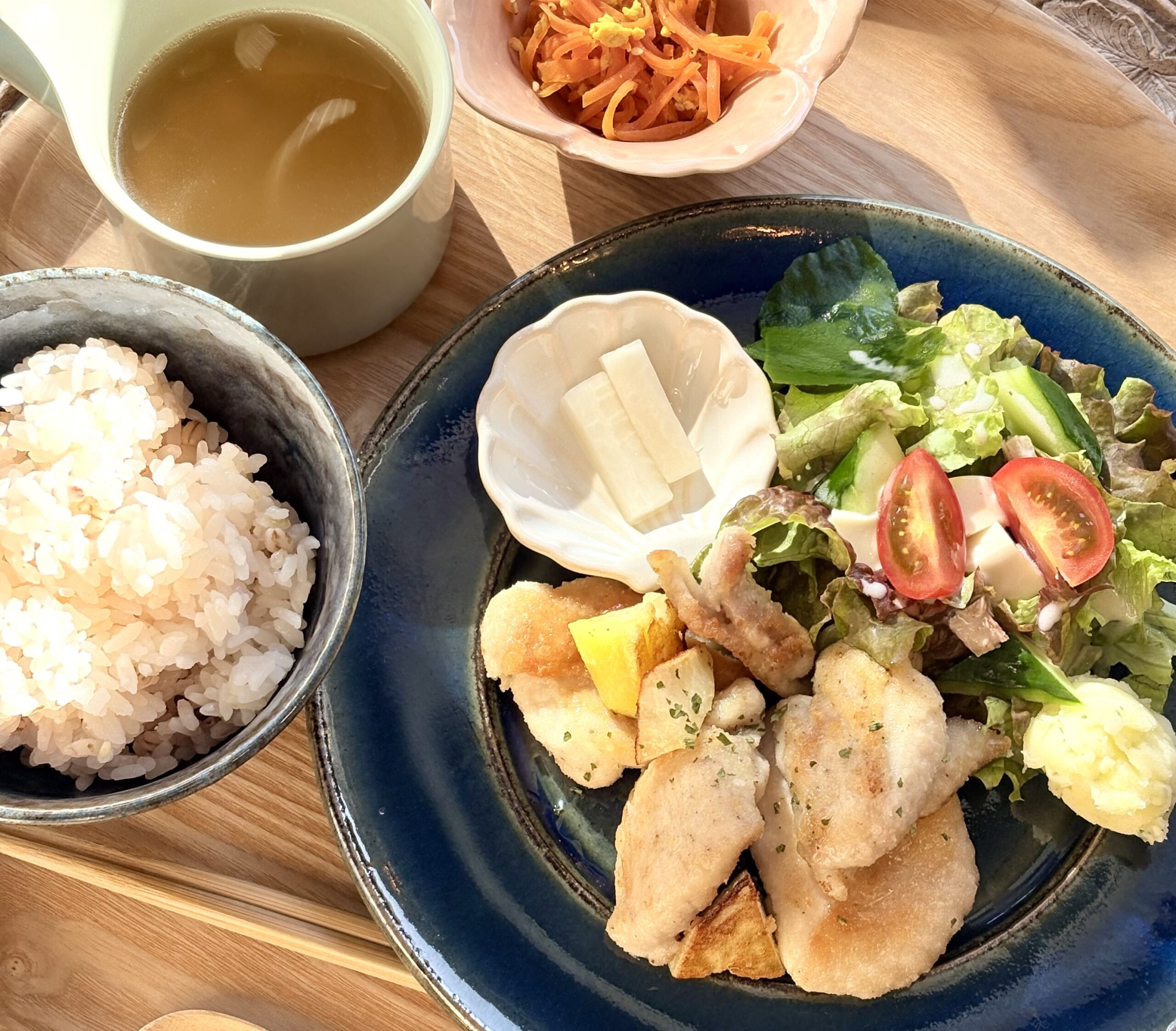 お野菜は主に高知県産、四国を中心に大切に育てられた自然派の鶏肉や豚肉などで作る日替わりのごはんランチです。
